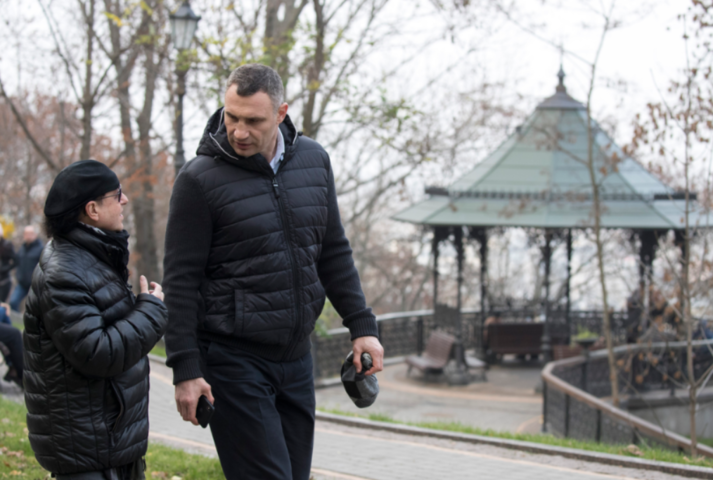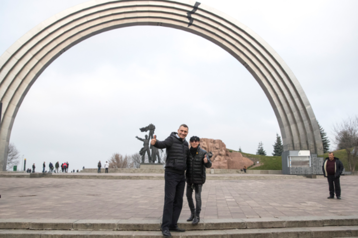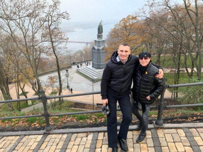 «Друзья! Сегодня с удовольствием показал Киев другу и одному из самых любимых музыкантов моей юности - лидеру немецкой рок-группы Scorpions Клаусу Майне. Прогулялись по Михайловской площади, в парке «Владимирская горка». Очень понравился Клаусу наш пешеходно-велосипедный мост. На улицах Киева он встретил немало своих поклонников. И даже спел», - отметил Кличко.