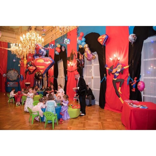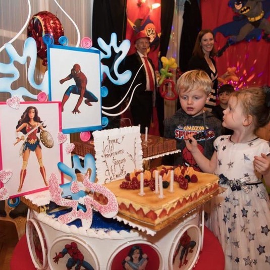 К Жаку и Габриэлле пришли юные друзья, для которых были накрыты столы с угощениями и приготовлены развлечения. Дети смогли покататься на пожарном кране, повеселиться, поиграть и полакомиться тортом. Судя по оформлению праздника, Жак и Габриэлла обожают Человека-паука и Чудо-женщину.