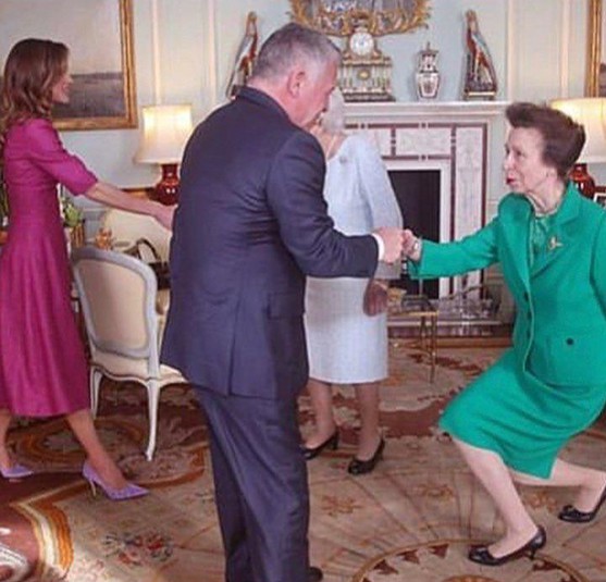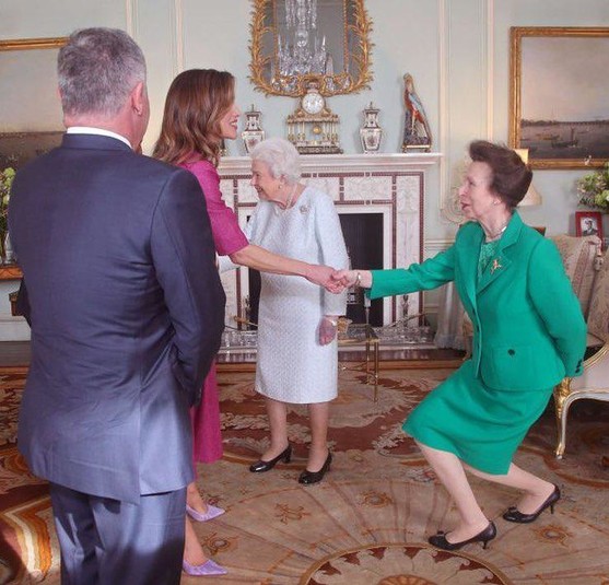 В гостиной дворца их ждала не только 92-летняя королева, но и ее дочь, 68-летняя принцесса Анна, которая поприветствовала гостей реверансом.