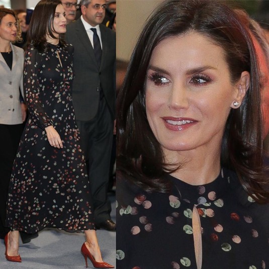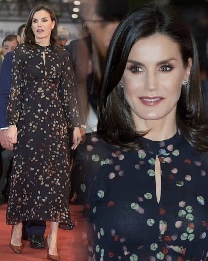 Королева Летиция в старом платье посетила выставку в Мадриде