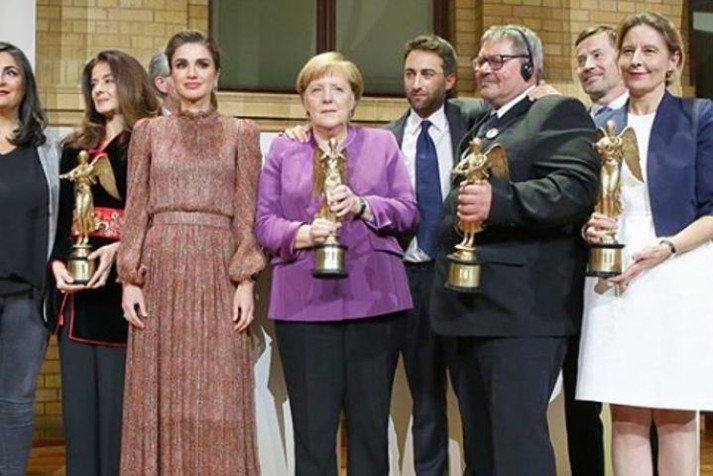 Описывая Меркель как борца за достоинство, разнообразие, гуманизм и сострадание, королева Рания поблагодарила канцлера за попытки объединить людей, а не толкать их друг против друга.