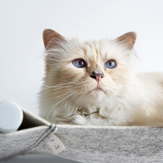 В нее вошел только один предмет — это войлочная лежанка-гамак Swing, которая крепится на стену как полка.