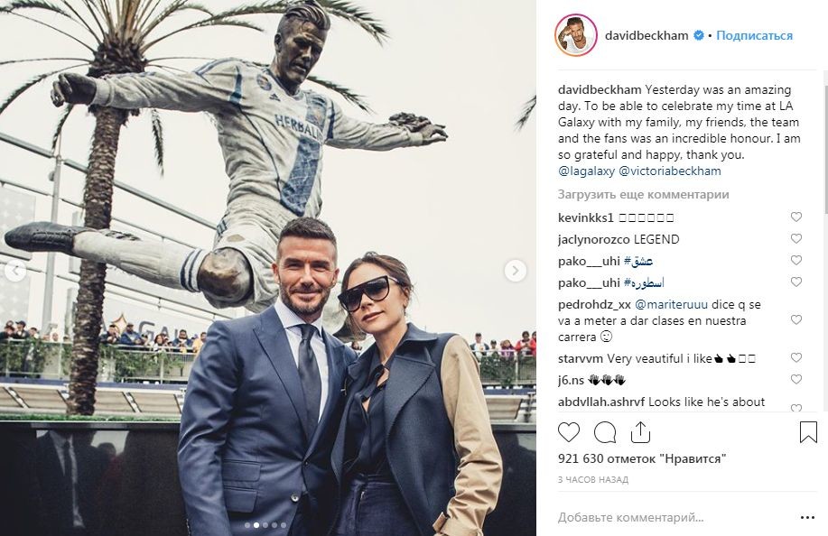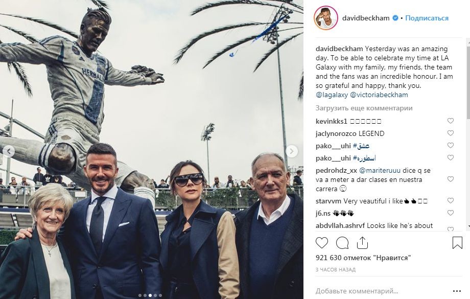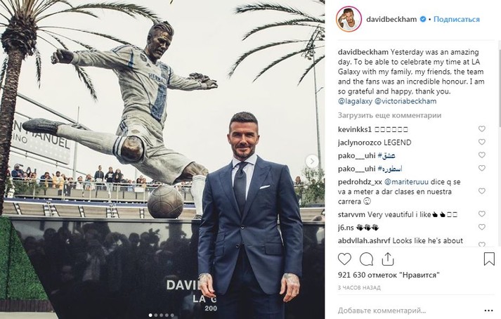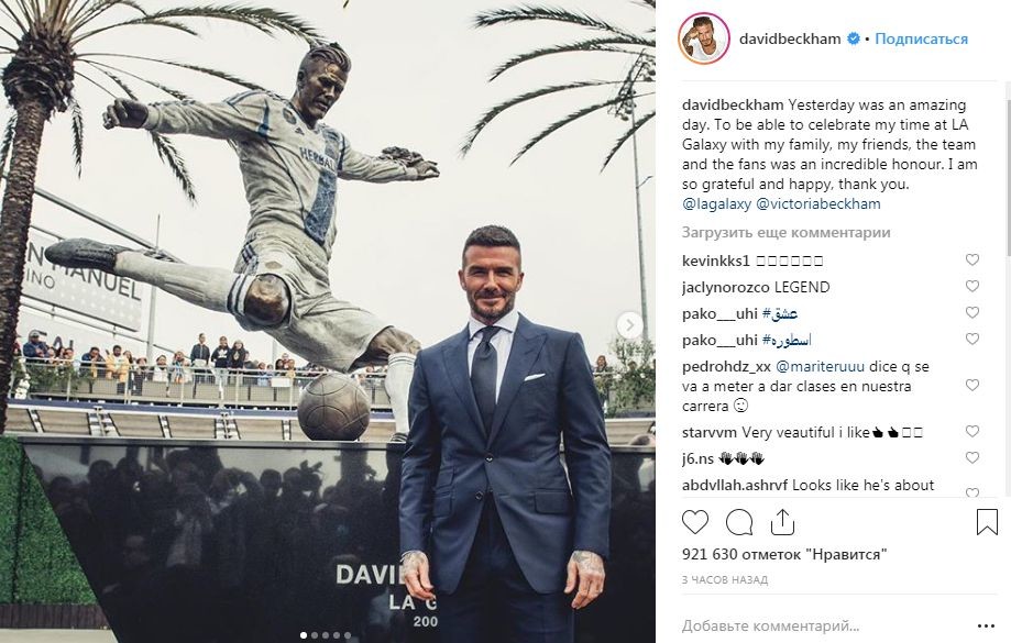 Лучше, чем у Роналду: в Калифорнии появился памятник Дэвиду Бекхэму