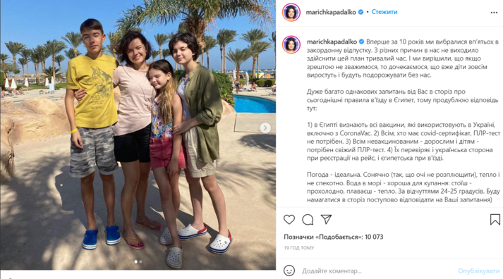 Семья устремилась отдыхать в Египет. Фото и впечатлениями Падалко поделилась в Instagram.