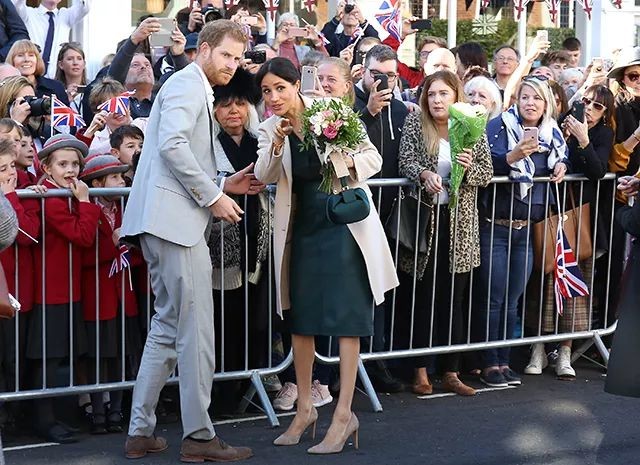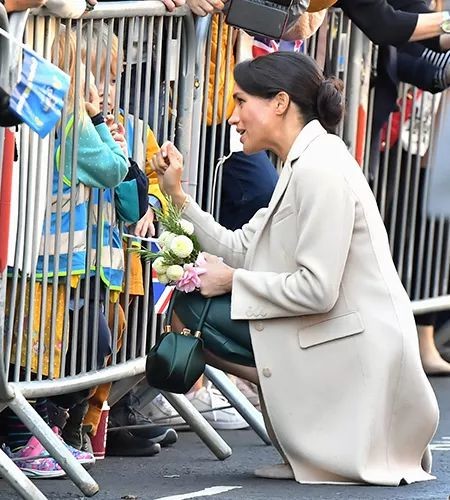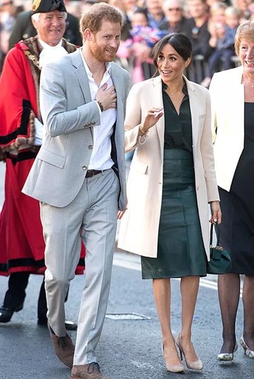 Для визита в Сассекс Меган выбрала комплект из шелковой блузки и узкой юбки-карандаша малахитового оттенка, а сверху накинула пальто молочно-белого цвета, а ее супруг остановил выбор на светло-сером костюме. И даже строгий протокол не заставил принца Гарри пройти мимо забавного пса, который вместе с хозяином тоже радушно приветствовал почетных гостей.