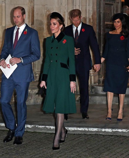 Вчера вечером, после памятного парада, посвященного 100-летию со дня окончания Первой мировой войны, Кейт Миддлтон, принц Уильям, Меган Маркл и принц Гарри отправились на службу в Вестминстерское аббатство