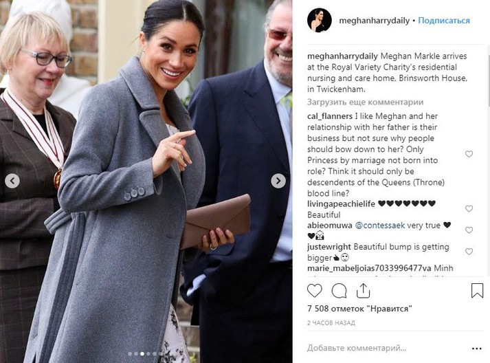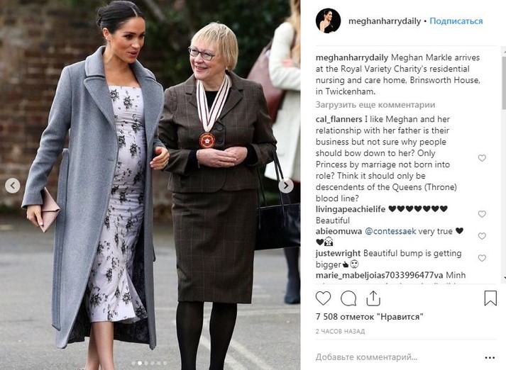 Визит Меган приурочен к посещению лондонского дома престарелых Brinsworth House. Посещение именного этого заведения, возможно, не случайно: именно сюда попадают представители творческой профессии - актеры, художники, артисты, за которыми после ухода на покой отвечает благотворительная организация Royal Variety Charity.