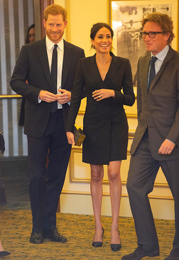 Образ, который Меган выбрала для театра, многих удивил... своей смелостью. Герцогиня появилась в платье-пиджаке от канадского бренда Judith and Charles и впервые за всю - пусть и совсем небольшую - историю своих светских выходов в новом статусе позволила себе длину мини.