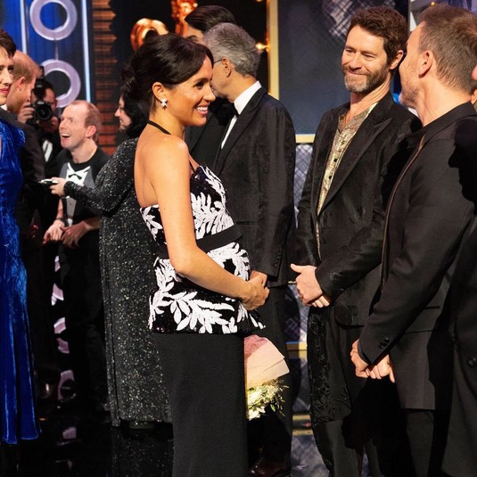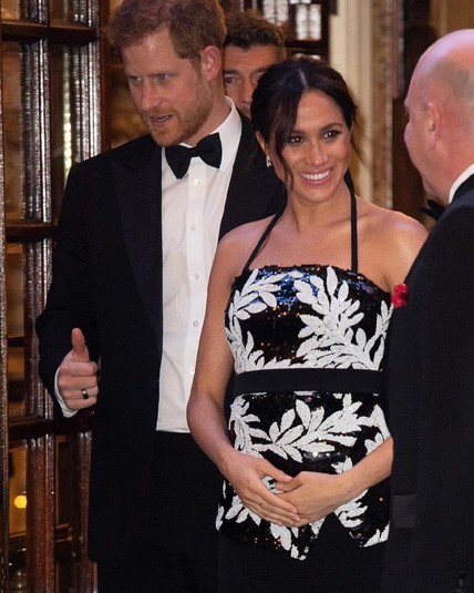 На днях Меган Маркл и принц Гарри посетили концерт Royal Variety Performance в театре Палладиум в Лондоне. На публике герцогиня Сассекская, интересное положение которой становится все заметнее, появилась в черно-белом топе, расшитом пайетками, и длинной юбке.