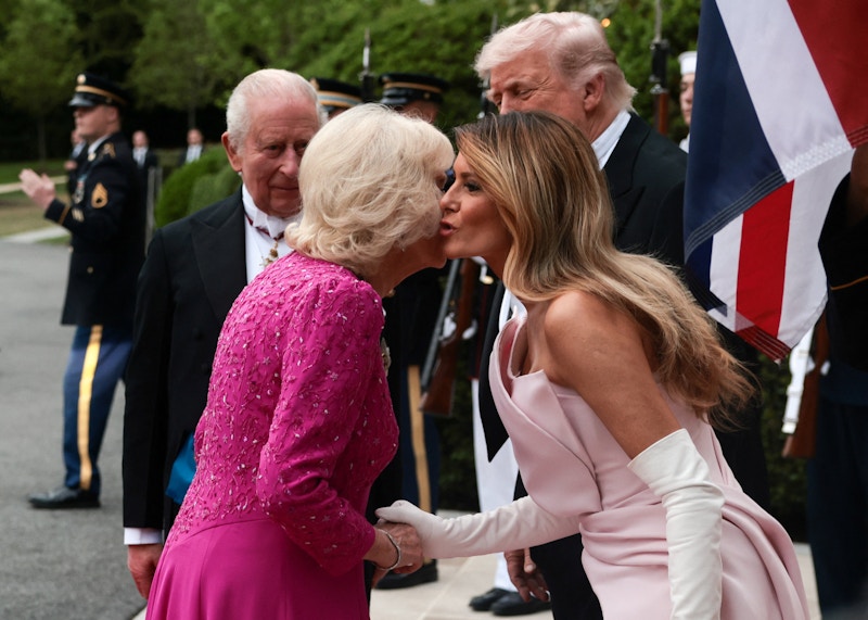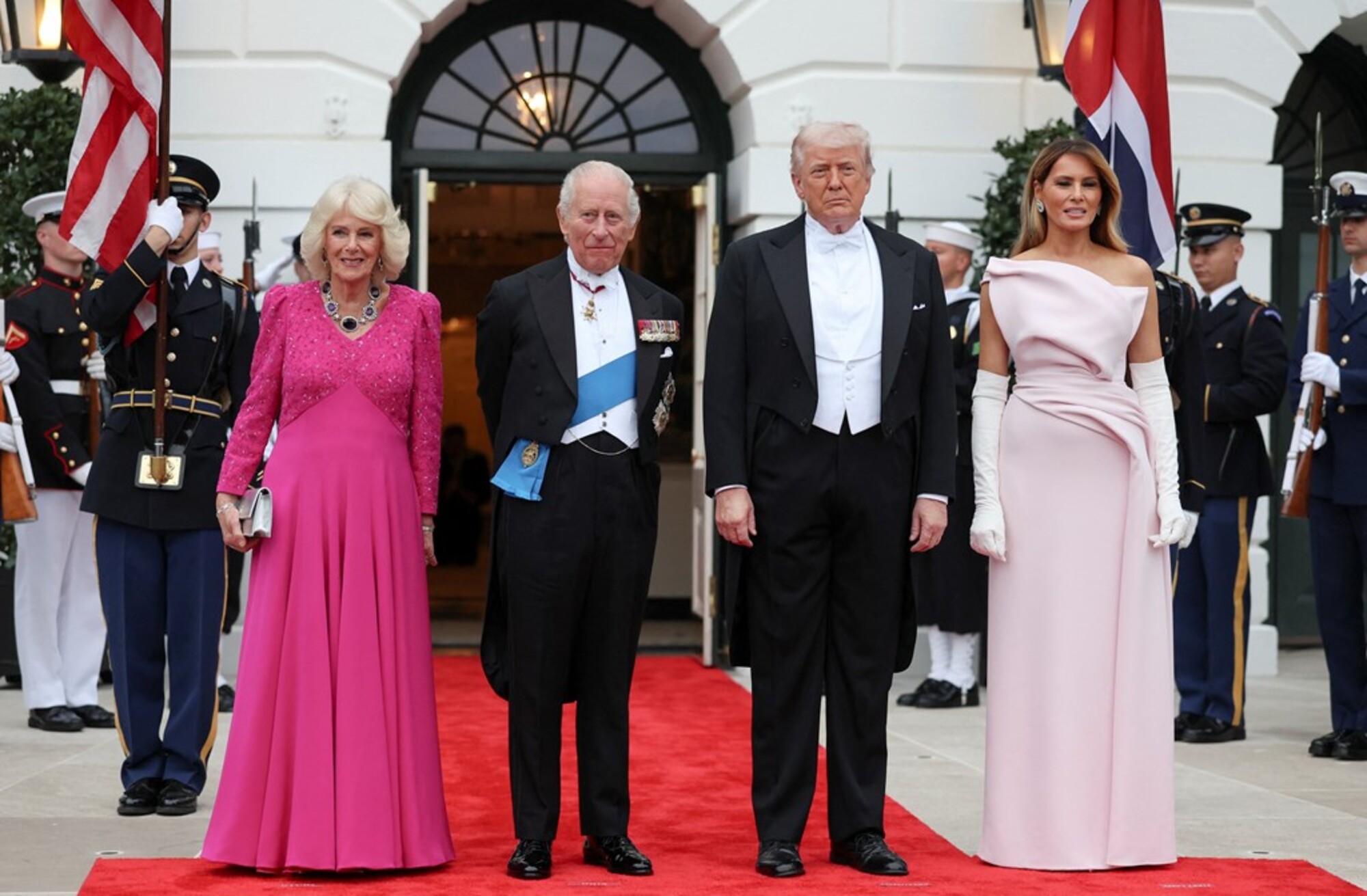 Під час державної вечері в Білому домі і перша леді США Меланія Трамп, і королева Великої Британії Камілла обрали образи у рожевих відтінках. Про це пише АР, передає «Главком».