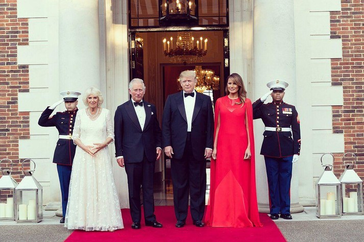 Так, на прием в честь принца Уэльского и герцогини Корнуольской Мелания Трамп пришла в эффектном алом наряде. Комбинированное шифоновое платье-кейп от Givenchy обошлось супруге Дональда Трампа в 8 340 долларов.