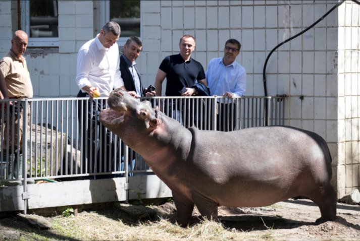 Мэр Кличко в киевском зоопарке нашел общий язык с бегемотом (фото)
