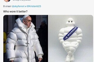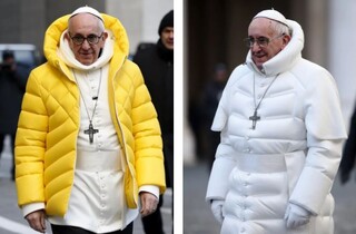 Фотографії Папи Римського Франциска у величезному білому пуховику Moncler, поверх якого одягнений срібний хрест, з'явилися на мережі. Користувачі соцмереж почали публікувати знімки глави Римо-католицької церкви в незвичайному для нього образі і перетворили фото на мем.