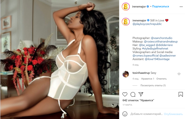 Жизни 41-летней Ирен Мейджор, родившейся в Камеруне, можно только позавидовать. Из-за своей внешности она выиграла конкурс красоты в 1995-м, а затем покорила сердце канадского миллионера Сэма Мэлина. С ним она переехала в Великобританию, купив замок, образовала крепкую семью и подарила ему восьмерых детей. Последнего Ирен родила в прошлом году, и спустя четыре месяца она решила сняться для чешского журнала Playboy.