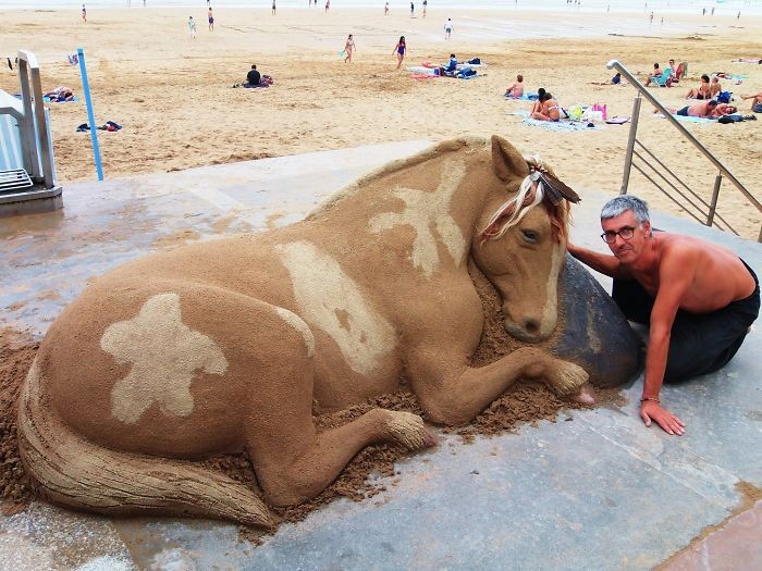 Для действительно талантливых людей все, что их окружает, является материалом для создания шедевров. Именно к таким личностям можно отнести Андони Басторрика. Проживающий в Испании мужчина прославился на родине благодаря своим невероятно детализированным и реалистичным скульптурам животных из песка.