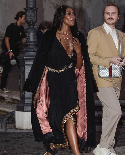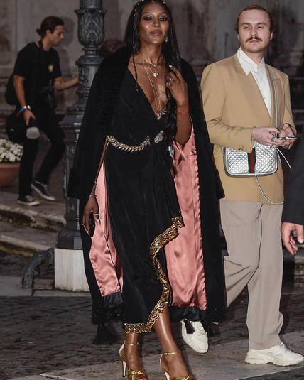 На днях в Риме прошел показ круизной коллекции Gucci, на который собралось немало звездных гостей. Среди них была и легендарная 49-летняя супермодель Наоми Кэмпбелл. Звезда прилетела в итальянскую столицу пораньше, чтобы успеть пройтись по бутикам. Во время этой прогулки ее и застали папарацци.