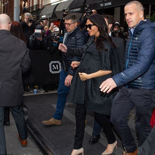 Именно по этой самой причине на выходе из отеля Портман, а также ее муж и дети оказались окружены десятками репортеров, которые много часов дежурили у дверей, ожидая появления беременной герцогини Сассекской.