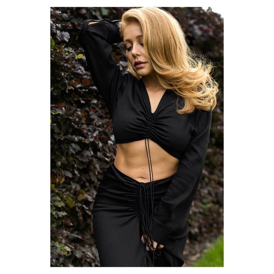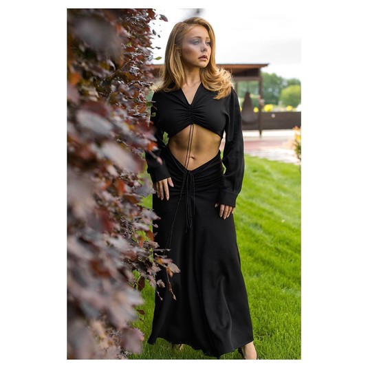 Поп-дива украинского шоу-бизнеса Тина Кароль решила показать идеальный рельефный плоский животик, ведь даже на карвнтине певица не расслаблялась, а активно занималась в зале у себя дома и на свежем воздухе. Она позирует в короткой черной блузке-топе с затяжками на груди и длинным рукавом, а также юбке-макси. Ее волосы уложены в аккуратную красивую прическу, макияж – естественный и натуральный.