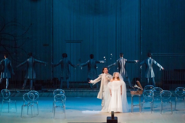 Обещали же как у Верди, вот и выполняют! Ну и что, что это только во вред? Поражает отсутствие актёрской игры у главных героев. Невероятно эмоциональные речитативы, арии и ансамбли исполняются поверхностно и безучастно, будто вокалисты не понимают о чём поют. Крайне слабо они взаимодействовали друг с другом. И это у режиссёра, известного своими актёрскими мастер-классами!