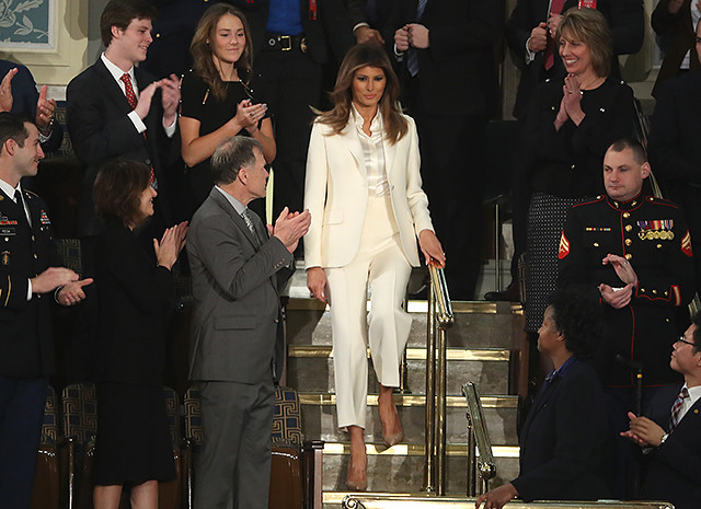 Вопреки традициям Мелания Трамп прибыла в Конгресс отдельно от Дональда, пишет CNN. Cогласно протоколу, жена главы государства должна сопровождать его на официальных мероприятиях, но Трампы подъехали к Капитолию на разных машинах, кроме того, Мелания посетила Конгресс в компании своих гостей, для которых провела отдельный прием.