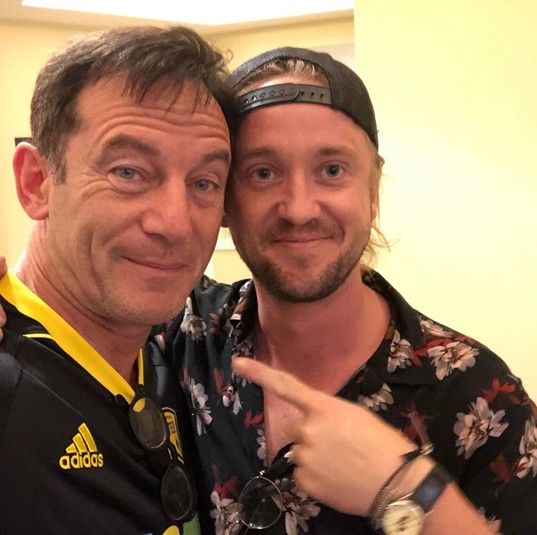 На большей части снимков, которые выкладывает актер, он позирует со своим коллегой Томом Фелтоном, сыгравшим его сына Драко