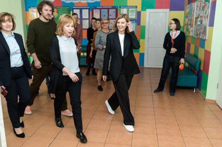 Также Елена Зеленская умеет по-новому преподнести классику. Например, черные штаны и белую блузку. Супруга президента подобрала вещи более свободного кроя, что сделало образ стильным и особенным.