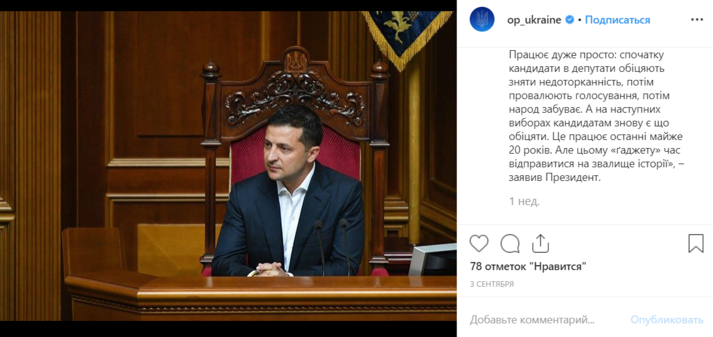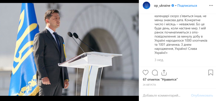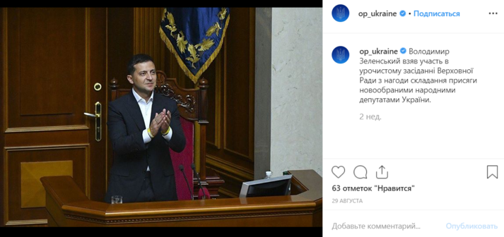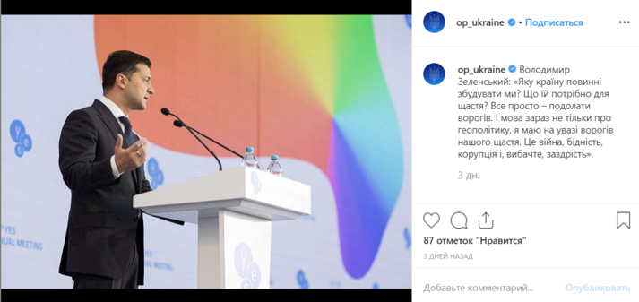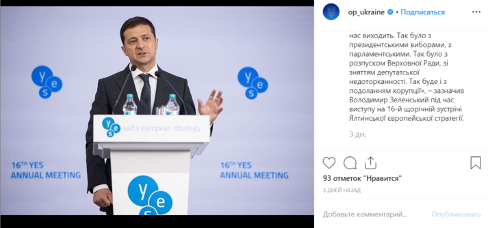 К слову, официальная страница Офиса президента в Facebook насчитывает почти 447 000 подписчиков.