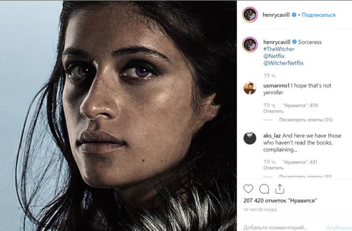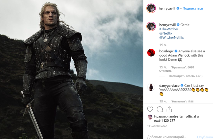 Актер Генри Кавилл, который играет ведьмака Геральта в грядущей экранизации книг польского писателя Анджея Сапковского, опубликовал первый официальный постер сериала и первые кадры с другими героями.