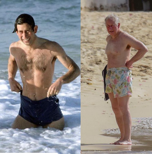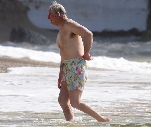 Папарацци засняли 70-летнего принца Чарльза в цветастых плавках на пляже