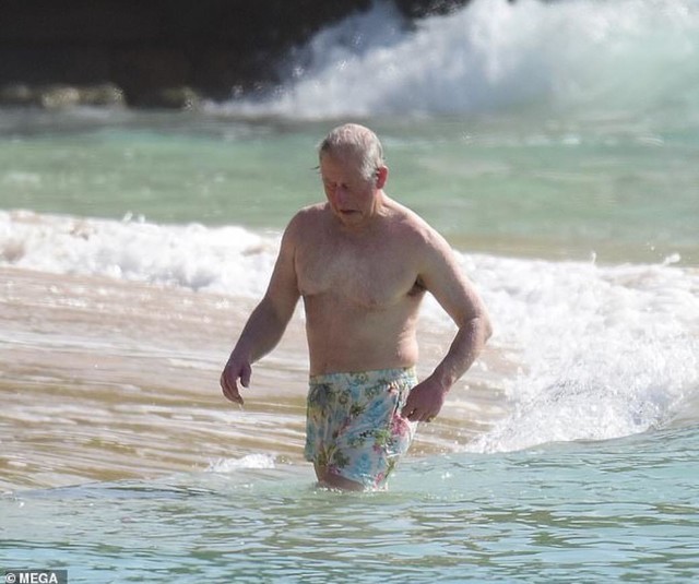 Накануне старший сын Елизаветы II и его избранница были замечены на одном из пляжей Барбадоса. Пока жена принимала солнечные ванны в закрытом купальнике и темных очках, 70-летний принц, разоблачившийся до купальных плавок яркой расцветки, прогуливался по песку и радостно плескался в морской воде.