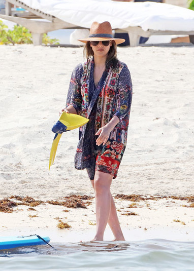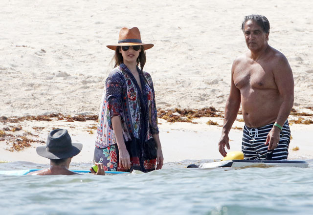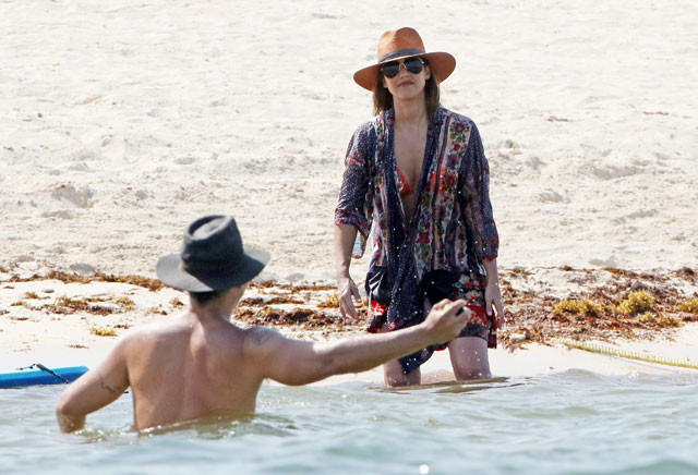 Но, завидев папарацци, актриса начала комплексовать и накинула тунику и не снимала ее до тех пор, пока фотографы не завершили свою работу.