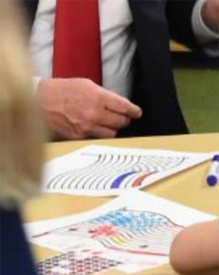 После того, как фото были опубликованы в Сети, самые внимательные заметили, что одну из полос американского флага Дональд закрасил синим, в то время как полоски должны быть красного и белого цветов.