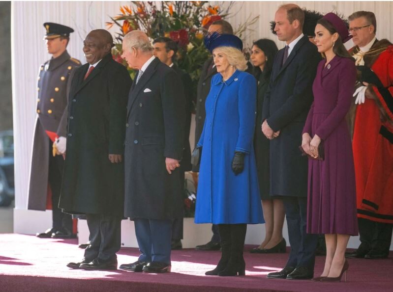 Президент ПАР Сиріл Рамафоса прибув із офіційним робочим візитом до Великої Британії та зустрівся з членами королівської родини – королем Чарльзом III і його дружиною, королевою-консортом Каміллою, сином, принцем Уельським Вільямом і його дружиною Кейт Міддлтон, принцесою Уельською. Зустріч проходила у Букінгемському палаці.
