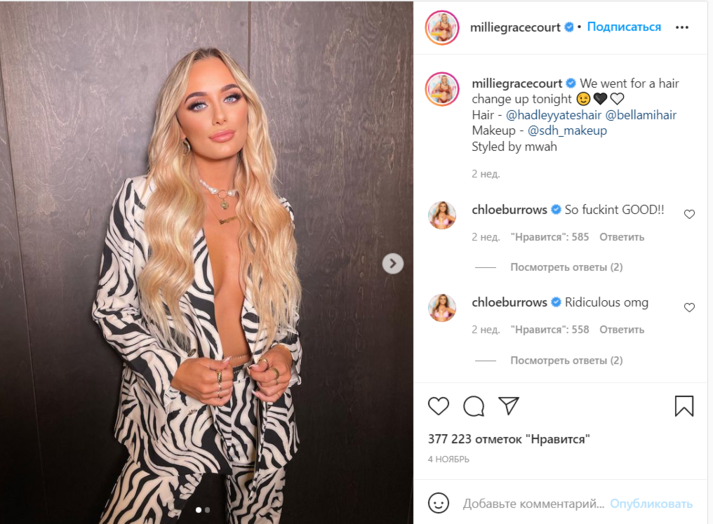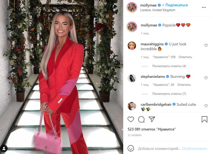 Журналисты обратили внимание, что нынешней осенью многие популярные в Instagram инфлюэнсеры, а также телезвезды и модели начали выходить в свет в жакетах, не надевая под них топы. Например, среди них оказалась участница британского реалити-шоу Love Island Молли-Мэй Хаг (Molly-Mae Hague): девушка поделилась снимком, на котором она запечатлена в красном брючном костюме без рубашки. Ее публикация собрала полмиллиона лайков.