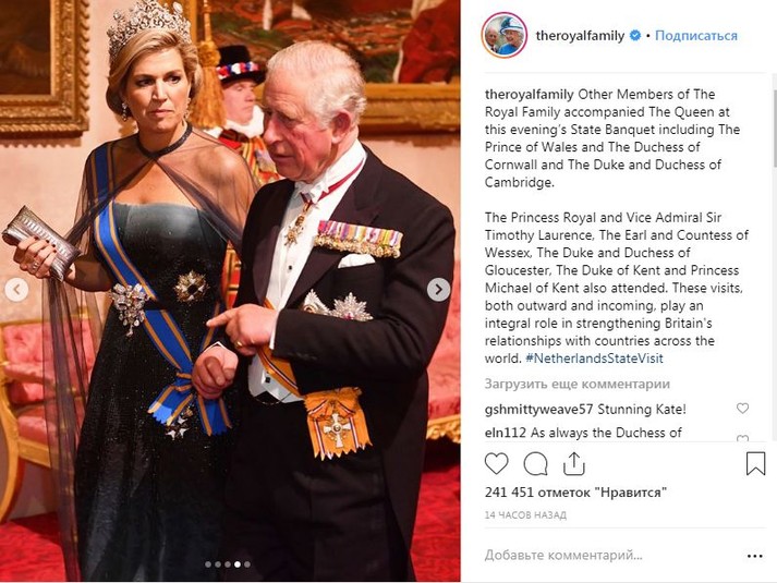Вчера вечером в Букингемском дворце состоялся торжественный ужин в честь короля Нидерландов Виллема-Александра и королевы Максимы