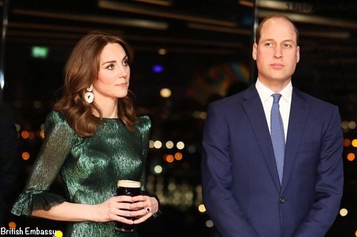 Кейт и Уильям на днях были приглашены в музей пив. В баре Guinness Storehouse прошел прием, устроенный британским послом в Ирландии Робином Барнеттом. На мероприятии будущая королева появилась в сверкающем изумрудном платье Vampires Wife стоимостью 1600 фунтов и серьгах H&M за шесть фунтов.