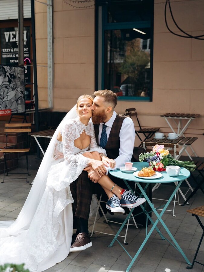 Пара знайома всього близько трьох місяців, але їхня історія розвивалася стрімко й несподівано навіть для близьких друзів. Святковий день вони провели максимально невимушено. Молодята встигли пройтися вулицями Тернополя, завітати до книгарні та зазирнути в кав’ярню. Атмосфера їхнього весілля більше нагадувала теплу міську прогулянку, ніж класичну урочисту церемонію.