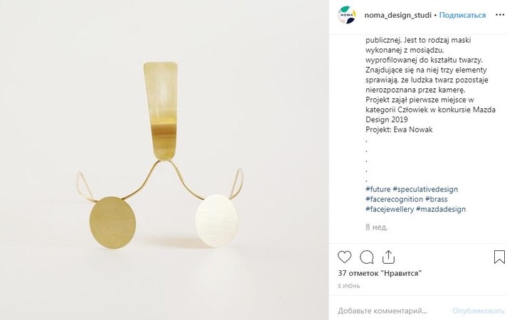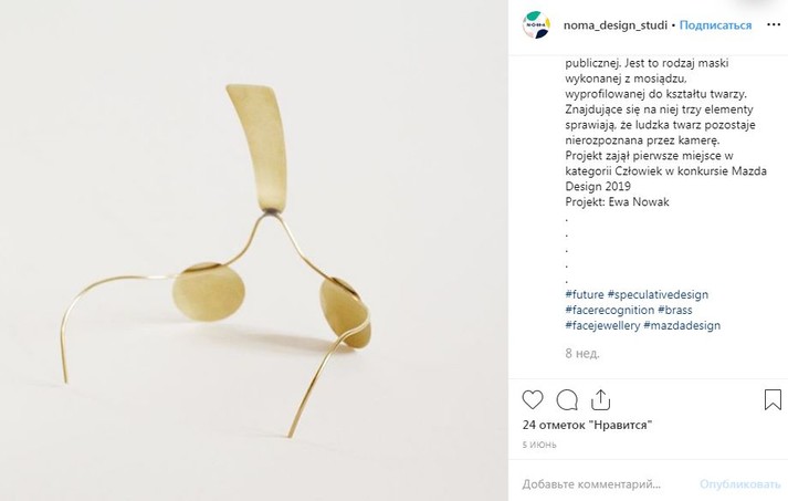 Варшавская студия дизайна Noma Studio разработала аксессуар для защиты от технологии распознавания лиц, которая функционирует на основе искусственного интеллекта при помощи камер наблюдения в общественных местах.