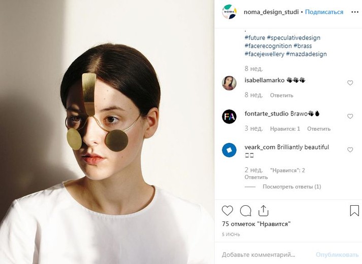 «Я была поражена, как с помощью технологии распознавания лиц могут определять наш гендер, возраст и настроение. Но также эту технологию постоянно усовершенствуют. Меня удивило, что, даже когда наше лицо частично закрыто, технология распознавания лиц по-прежнему может опознавать и различать нас», — объяснила Ева Новак свое решение создать такое украшение в комментарии изданию Fast Company.