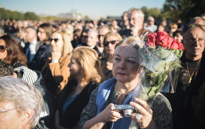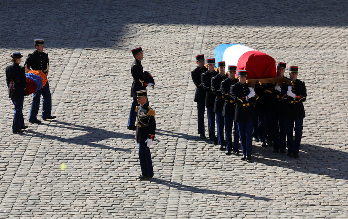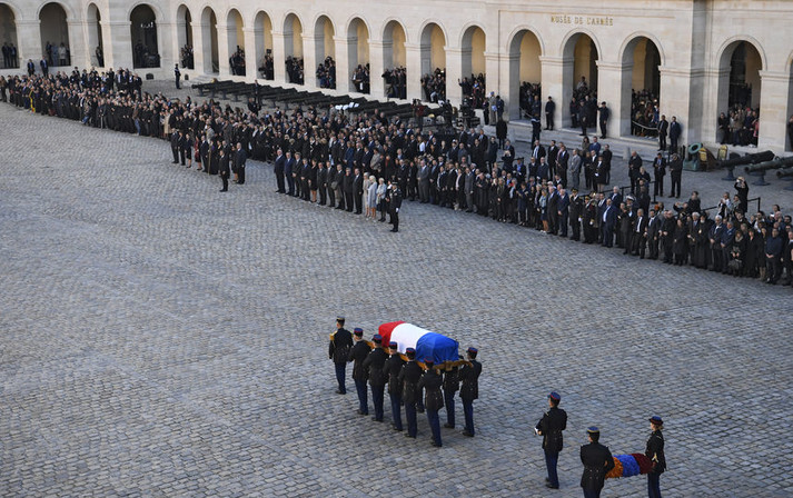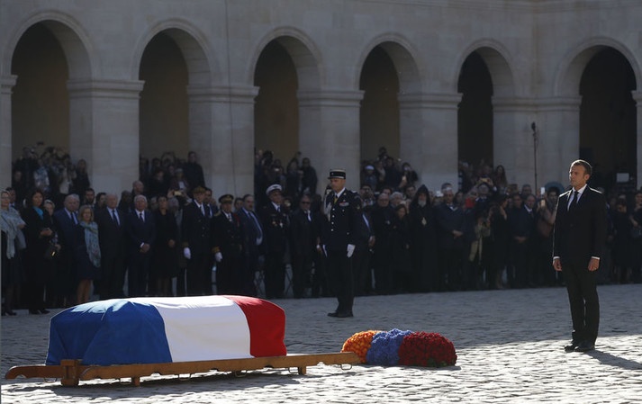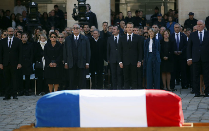 Официальную траурную церемонию, которая прошла у Дома Инвалидов, посетили первые лица Франции и Армении: президент Франции Эмманюэль Макрон и премьер-министр Армении Никола Пашинян.