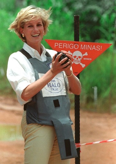 После развода с принцем Чарльзом Диана хотела и дальше работать с благотворительными организациями, участвовать в различных кампаниях по международным и гуманитарным вопросам. В январе 1997 года она посетила Анголу, чтобы поддержать кампанию Красного Креста о запрете противопехотных мин. Для фото Леди Ди позирует на частично расчищенном минном поле.