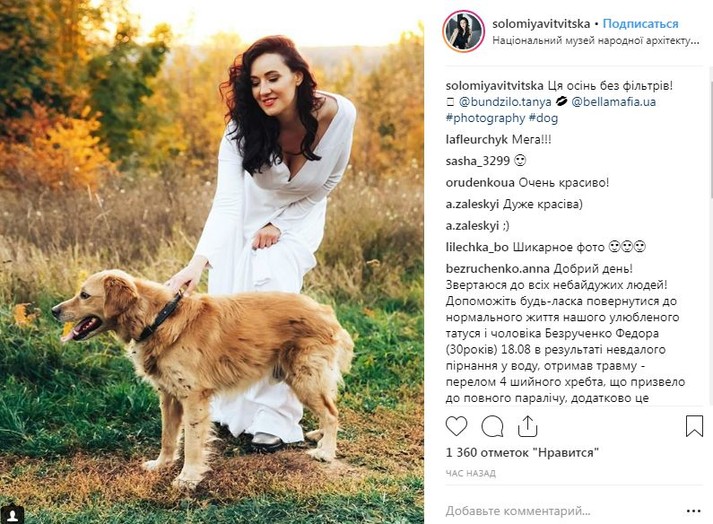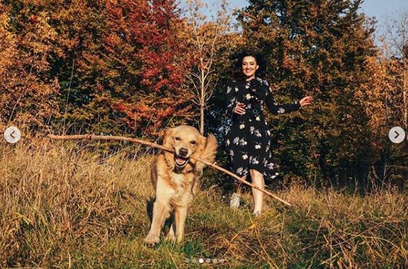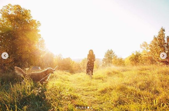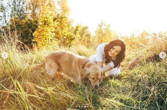 На своей странице Instagram украинская телеведущая Соломия Витвицкая опубликовала серию солнечных снимков со поделилась с подписчиками серией снимков, отснятых в музее Пирогово, на которых позирует с золотистым ретривером по кличке Мел.