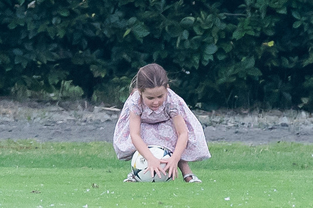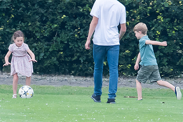 Папарацци сфотографировали пятилетнего принца Джорджа и четырехлетнюю принцессу Шарлотту во время игры в мяч. Дети Кейт Миддлтон и принца Уильяма были увлечены этим занятием не хуже взрослых на игровом поле.