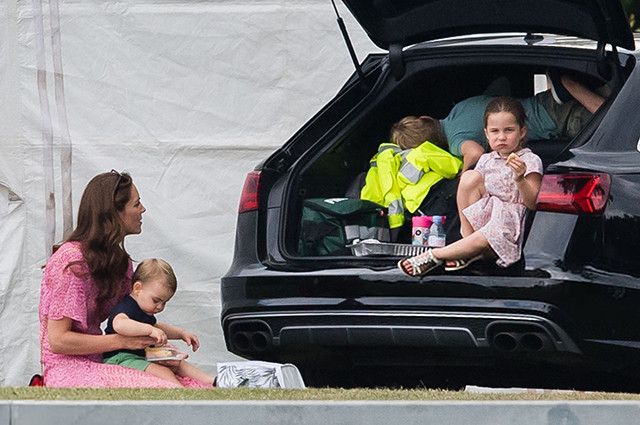 Герцогиня Кембриджская не отходила от своего младшего ребенка, годовалого принца Луи. За старшими детьми она тоже наблюдала, но им была предоставлена большая свобода. Когда дети проголодались герцогиня Кэтрин села вместе с ними у открытого автомобиля и устроила перекус.