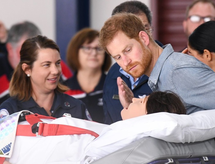 Для Меган и Гарри врачи провели специальный мастер-класс по родам в экстренных случаях. На манекенах медики показали герцогу и герцогине, как принимать роды в тех или иных условиях, а также рассмотрели случай, когда новорожденного необходимо поместить в камеру для недоношенных малышей.