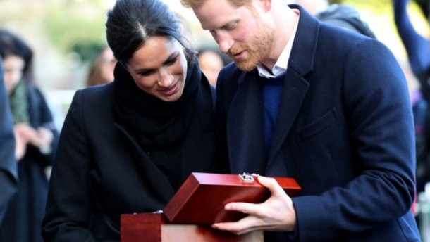 Во время официального визита на фестиваль культур в уэльском городе Кардиф британский принц Гарри и его невеста, американская актриса Меган Маркл получили свадебный подарок.