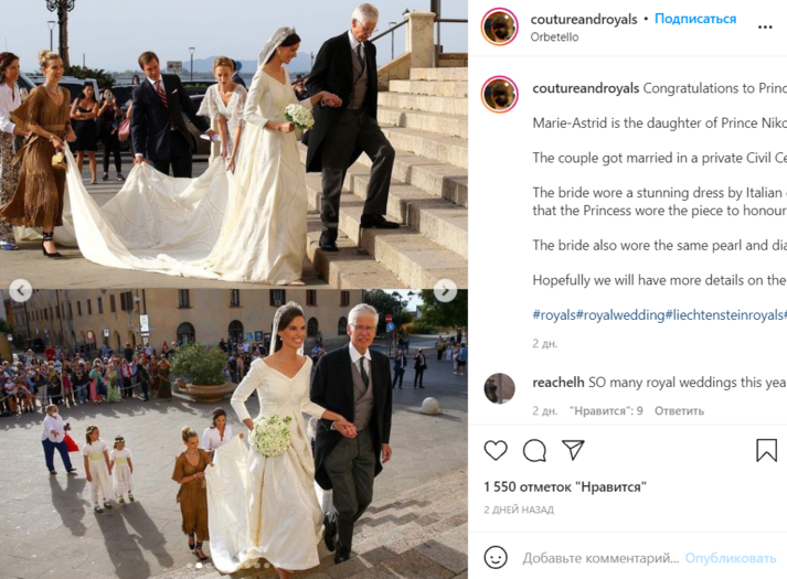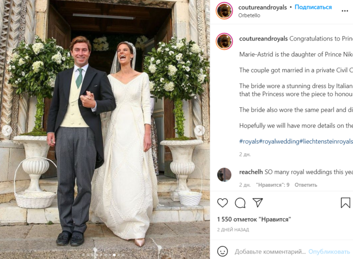 Принцесса Астрид из Лихтенштейна вышла замуж за 36-летнего американского предпринимателя Ральфа Уортингтона. Роскошная свадьба состоялась в готическом соборе в Тоскане, Италия. Согласно традициям, к алтарю женщину вел ее отец.