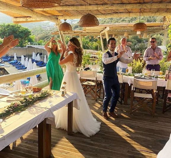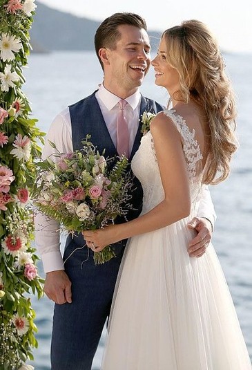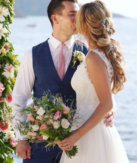 Теперь Риан Сагден и Оливер Меллор похвастались снимками из роскошной церемонии свадьбы. Пара обменялась клятвами в солнечной Турции. Модель вышла к жениху в белом платье с кружевом. Свой образ она дополнила обувью на каблуке и роскошной прической.