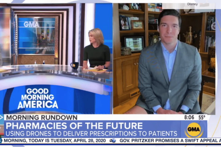 Уилл Рив, репортер ABC News, вышел в эфир программы «Доброе утро, Америка» из дома, чтобы рассказать о доставке лекарств из аптек при помощи дронов. Мужчина решил не надевать брюки, видимо, решив, что никто этого не заметит.