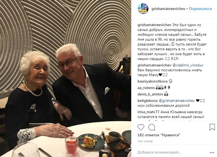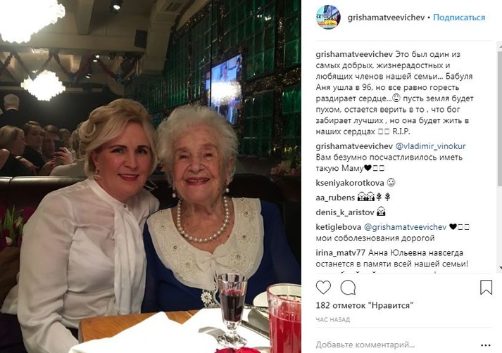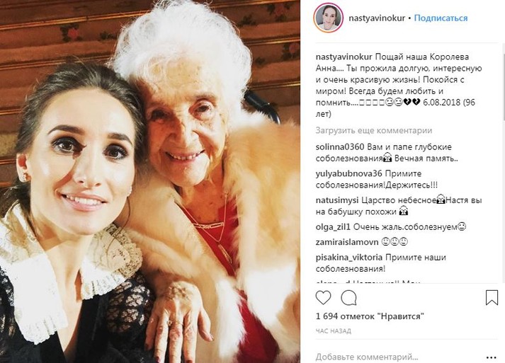 «Прощай наша Королева Анна... Ты прожила долгую, интересную и очень красивую жизнь! Покойся с миром! Всегда будем любить и помнить... 6.08.2018», - трогательно написала внучка Анны Юльевны, балерина Анастасия Винокур.